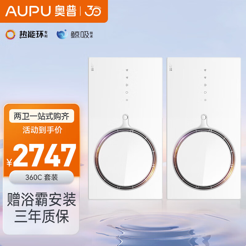 奥普 浴霸Q360C热能环风暖大功率两档速热360度强风双倍鲸吸换气价格:2748.00元!
