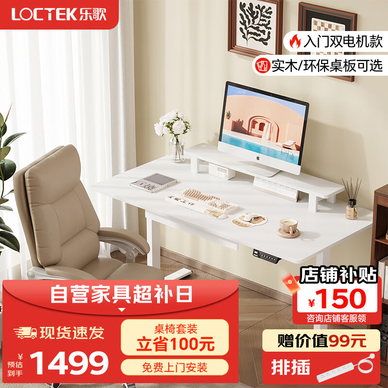 乐歌电动升降桌电脑桌双电机站立办公家用书桌 ES2/1.4m雅白色套装价格:1749.00元!