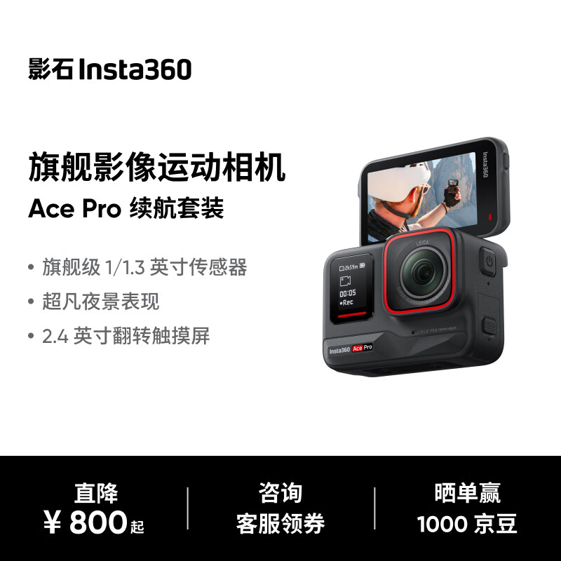 Insta360影石Insta360 Ace Pro运动相机AI智能摄像机防抖摩托骑行潜水Vlog摄像机(续航套装)价格:2467.80元!