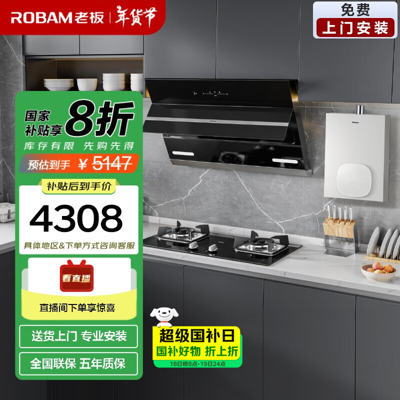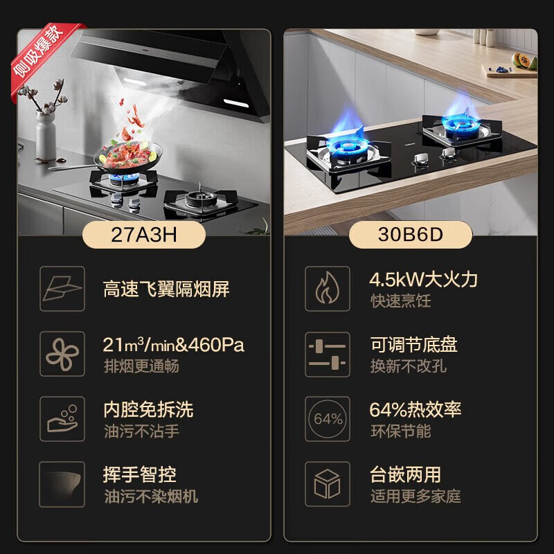 1、家里装修,看了很久才选了老板这款套装,物美价廉,外观时尚大方,吸力很强,使用非常方便。触摸屏幕,清洁十分方便,感应式调节人性化设计。风大且静音,京东自营值得推荐。预约到时安装,自由灵活,期待更好的使用体验!!