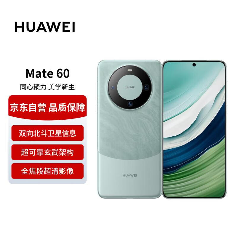 华为旗舰手机 Mate 60 12GB 512GB 雅川青【赠话费券】价格:4999.00元!
