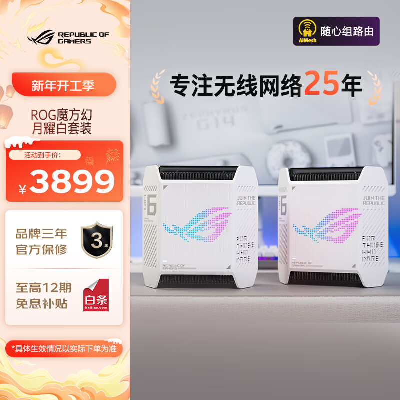 华硕(ASUS)ROG魔方幻三频万兆电竞分布式路由器/全屋覆盖WiFi6千兆无线MESH/电竞房路由/Ai路由器价格:3899.00元!