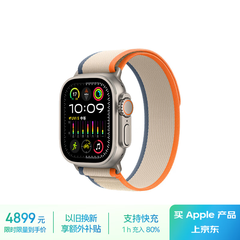 Apple/苹果 Watch Ultra2 智能手表GPS+蜂窝款49毫米钛金属表壳橙配米色野径回环式表带M/L MRFM3CH/A价格:4899.00元!