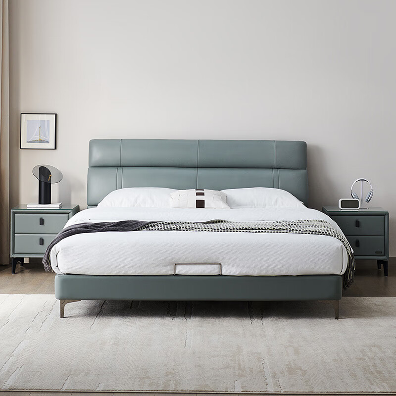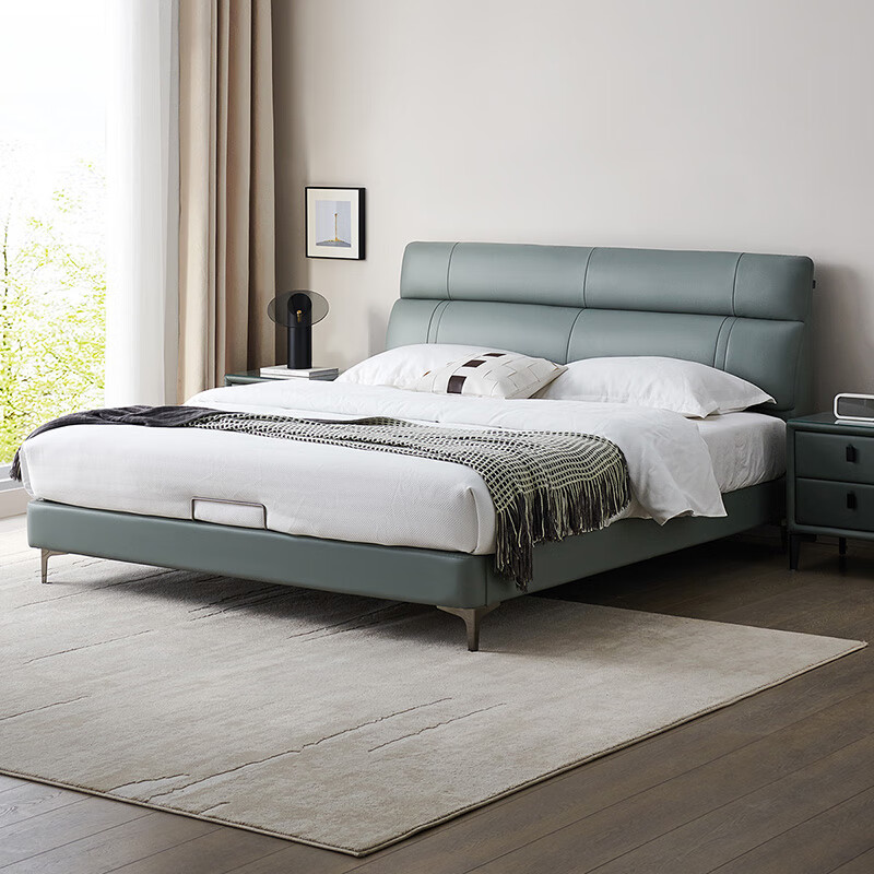 全友家居 简约头层牛皮真皮床主卧室双人轻奢软包大床家具婚床105251价格:4912.86元!