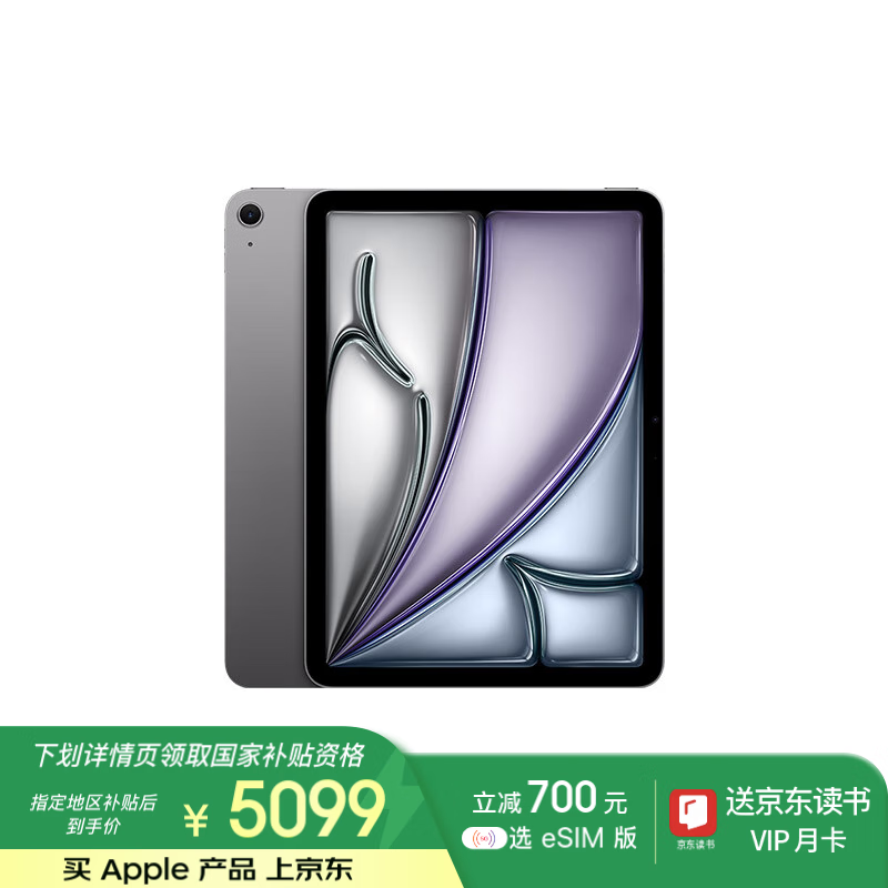Apple/苹果 iPad Air 11英寸 M2芯片 2024年新款平板电脑(Air6/256G WLAN版/MUWG3CH/A)深空灰色价格:5599.00元!