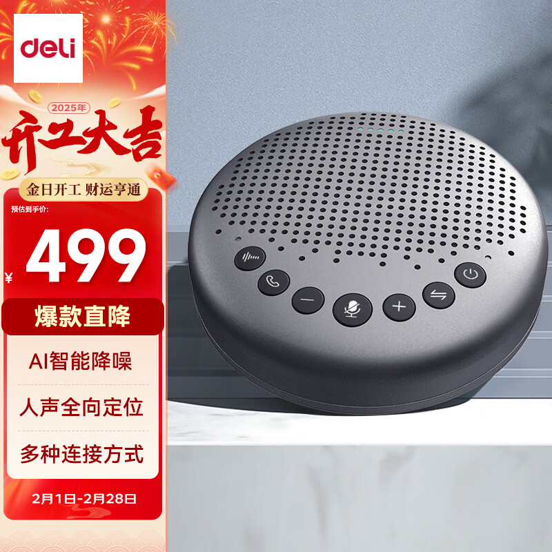 得力视频会议全向麦克风无线连接 (360度直径8米拾音 适合10-50㎡中小型会议室)拾音器蓝牙音箱14870价格:499.00元!