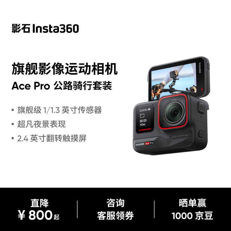Insta360影石 Ace Pro运动相机AI智能摄像机防抖摩托(公路骑行套装)价格:2618.00元!