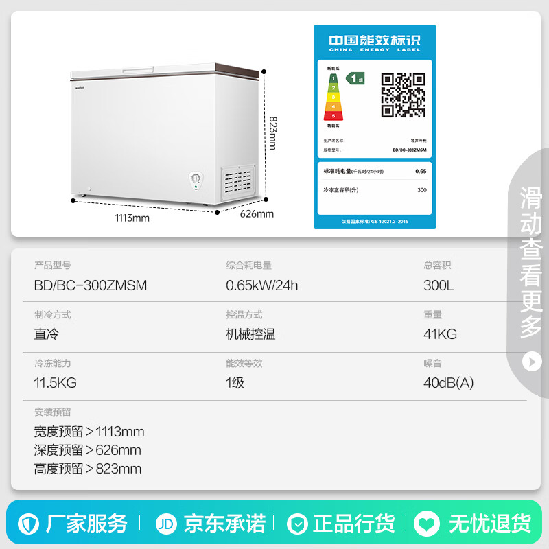 容声(Ronshen)300升冰柜减霜大容量卧式冷柜家用冷藏冷冻一级能效雪糕厨房囤货冰箱BD/BC-300ZMSM以旧换新价格:1199.00元!