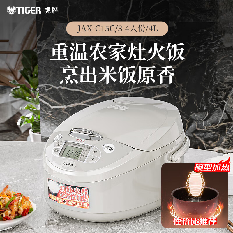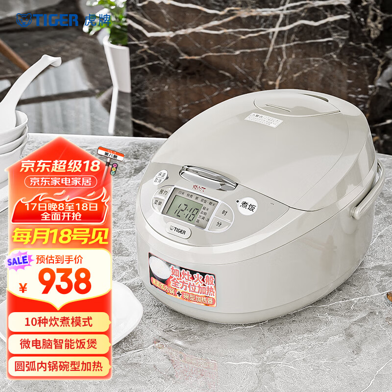 虎牌(TIGER)电饭锅 智能微电脑电饭煲家用3-8人 4LJAX-C15C价格:938.00元!