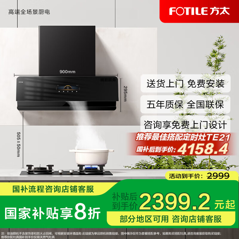 方太新月F1S系列侧吸抽油烟机变频25巡航风量烟灶联动单烟机F1S 政府补贴20%(可搭配燃气灶)价格:2999.00元!