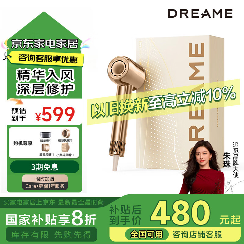 追觅韶光G20Pro高速吹风机家用 大功率负离子吹风筒 精华弹护发润发电吹风甄选礼物节日礼物 香槟金价格:599.00元!