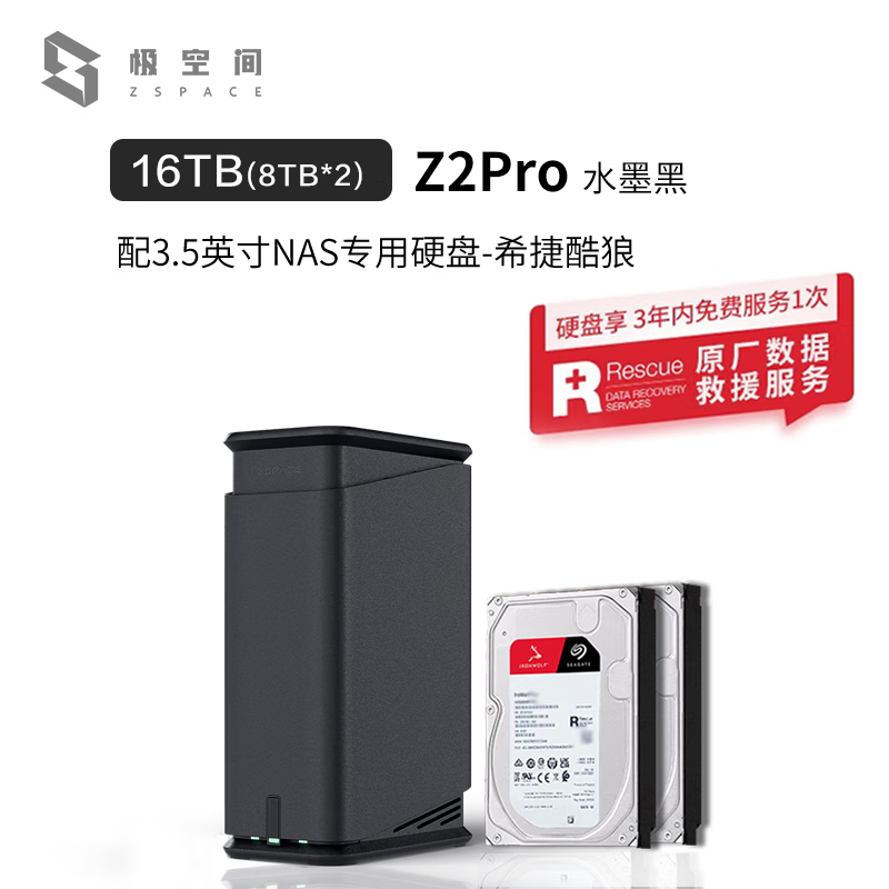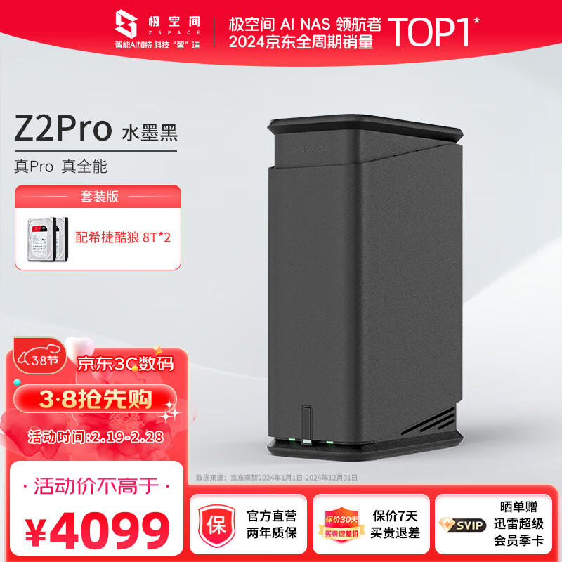 极空间私有云Z2Pro 16T四核2盘位NAS家庭个人云网络存储服务器手机平板扩容适用iPhone16 水墨黑价格:4299.00元!