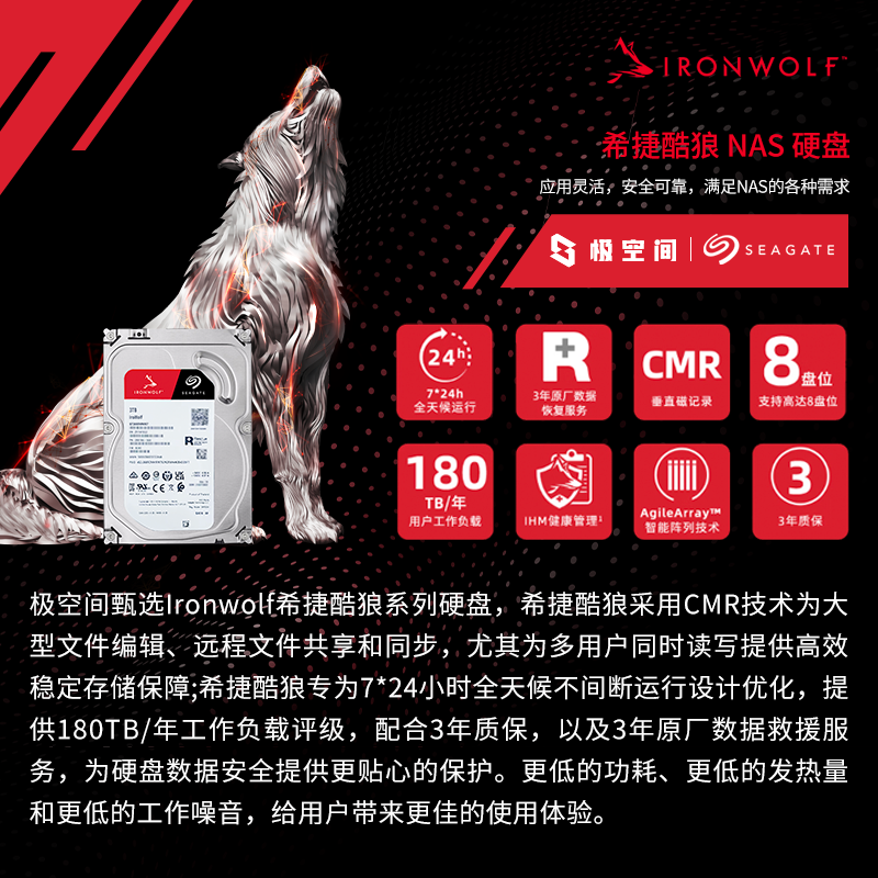 特殊功能:支持音乐播放,支持AppleTV,支持文档同步,支持杜比视界,支持文件链接分享,支持群组空间划分,支持文件加密保险箱,支持文件去重,支持迅雷下载,支持文件查重,支持硬盘休眠,支持视频转码,支持快捷文件夹,支持视频监控存储,支持人脸识别,支持硬盘搬家,支持智能相册,支持实时转码