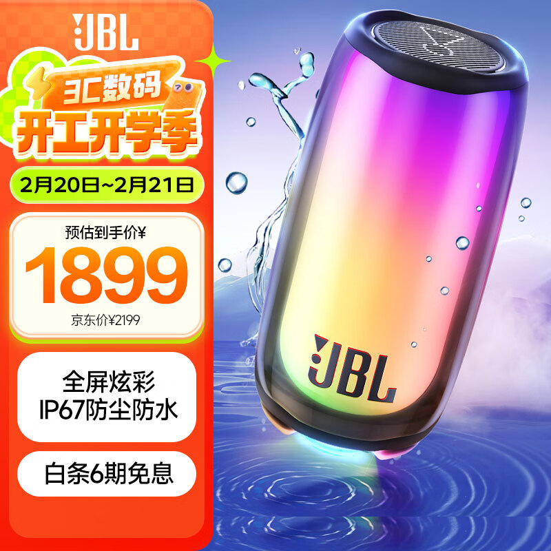 JBL PULSE5 音乐脉动五代 蓝牙音箱 派对音箱 独立高音单元 家用电脑音响 开学季礼物 jbl pulse5价格:1979.00元!