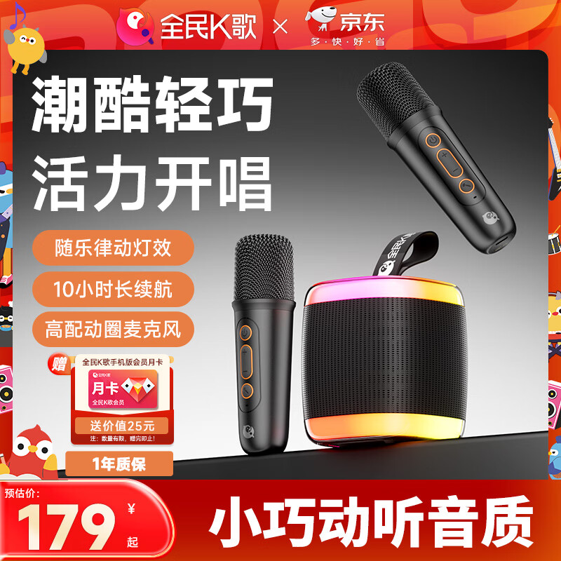K歌MZ38 无线手提便携式户外广场舞音响套装桌面家用低音炮儿童麦克风话筒K歌家庭KTV黑色音箱+双麦价格:179.00元!