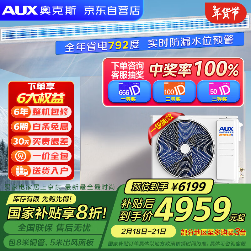 奥克斯(AUX)中央空调风管机一拖一3匹全直流变频 1级能效 卿尊语音风管机 以旧换新补贴 GRD72/BPR3QA(B1)价格:6169.00元!