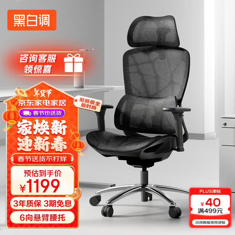 黑白调E2 Pro 人体工学椅办公椅子电脑椅人工力学座椅电竞椅学习椅 线控价格:1499.00元!