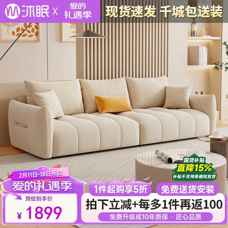 沐眠奶油风防猫爪绒布沙发客厅大小户型 AZ-128 小四人位 a价格:3798.00元!