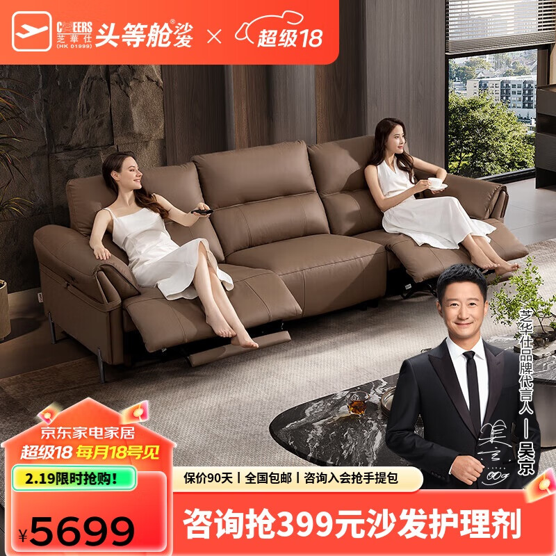 芝华仕(CHEERS)头等舱智能椅绅士皮沙发零靠墙意式功能客厅芝华士50795升级三棕价格:5699.00元!
