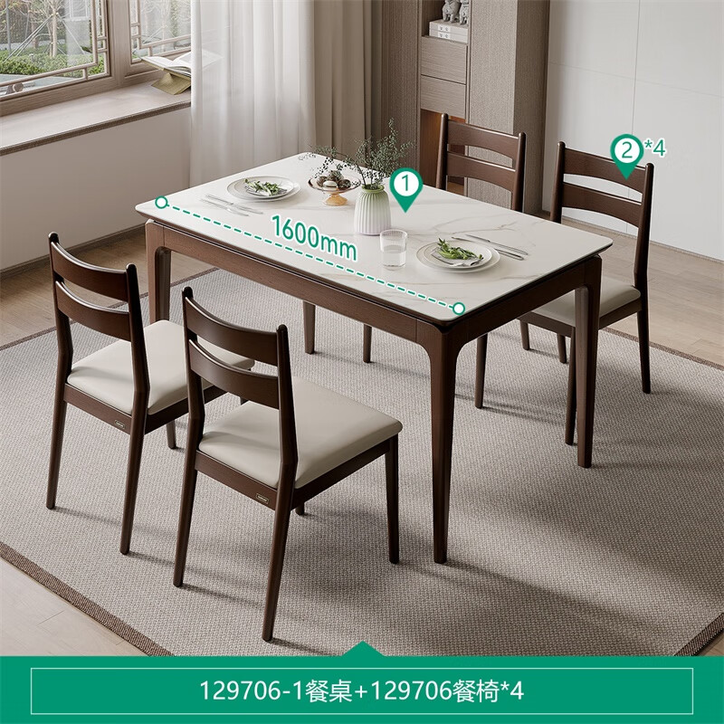 全友家居 新中式钢化玻璃实木框餐桌椅组合吃饭桌子一桌四椅129706价格:3427.14元!