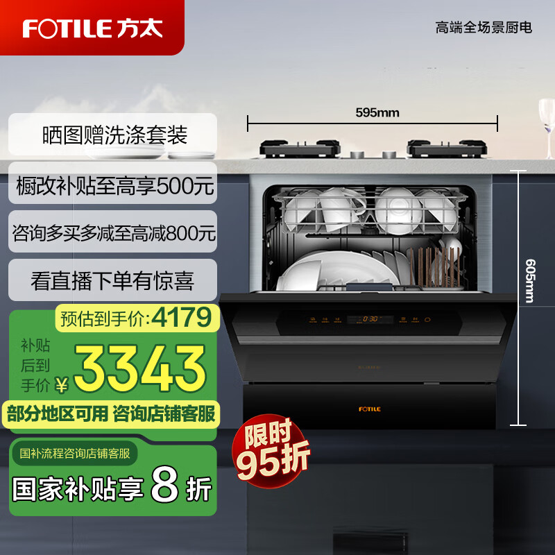 方太(FOTILE)洗碗机嵌入式家用 高能气泡洗 12套大容量 灶下洗碗机 一级水效 30min超快洗02-NJ01价格:4399.00元!