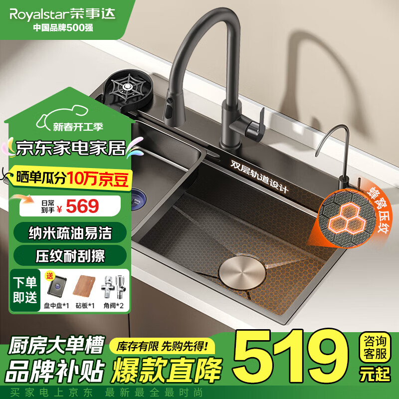 荣事达荣事达纳米压纹水槽6845价格参考: