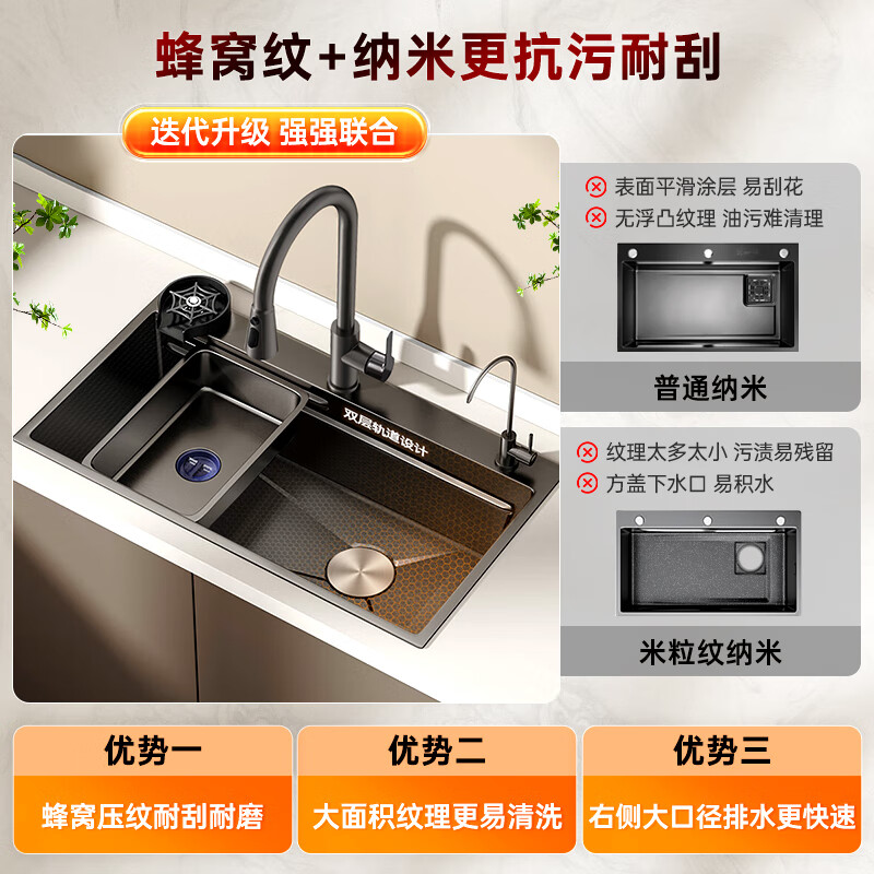 荣事达荣事达纳米压纹水槽6845优缺点评测评价: