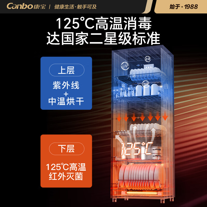 康宝(Canbo)消毒柜 家用立式消毒碗柜大容量商用碗筷收纳消毒柜双门高温二碗柜【补贴】XDZ320-D1价格:1699.00元!