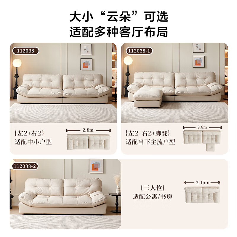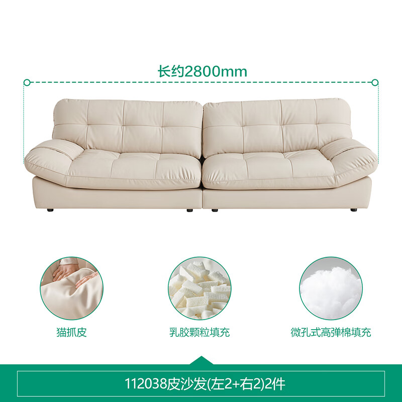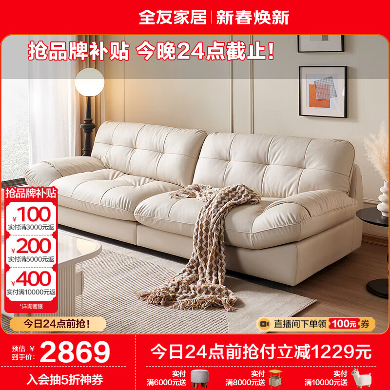 全友家居 现代简约家用皮艺沙发奶油风小户型客厅直排沙发家具112038价格:4098.57元!