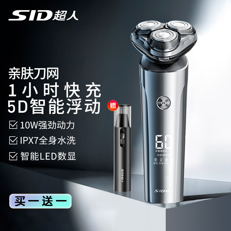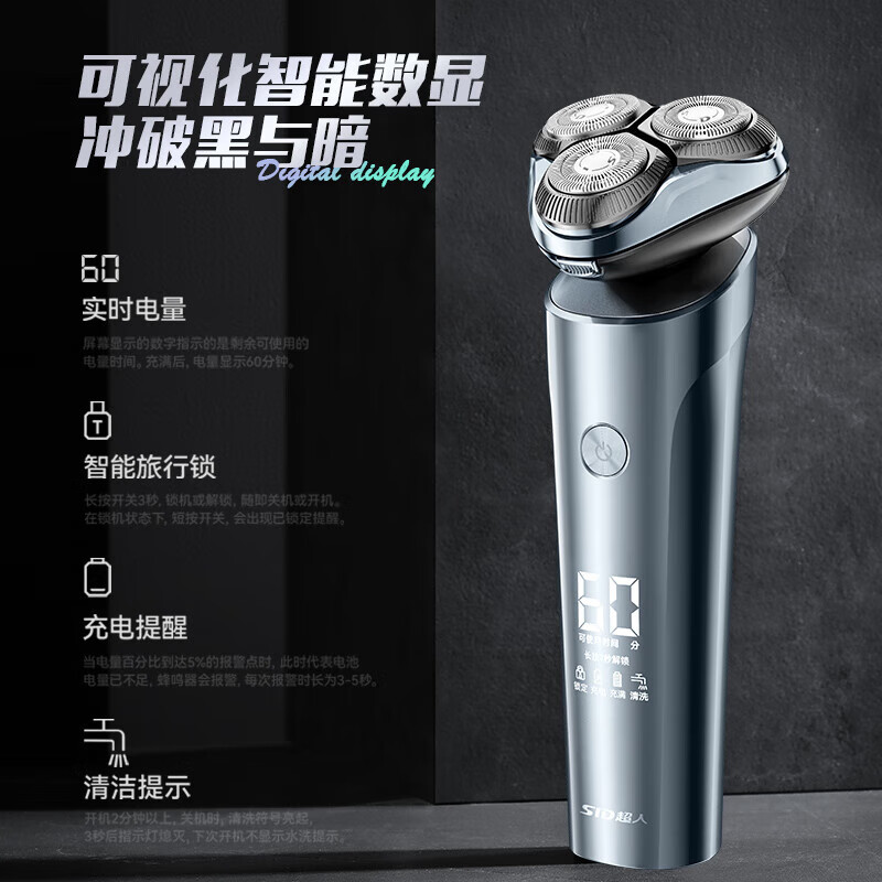 超人电动剃须刀男士刮胡刀智能全身水洗剃胡须子刀送生日男友男生情人节日礼物电动剃须刀太空银礼盒价格:99.00元!