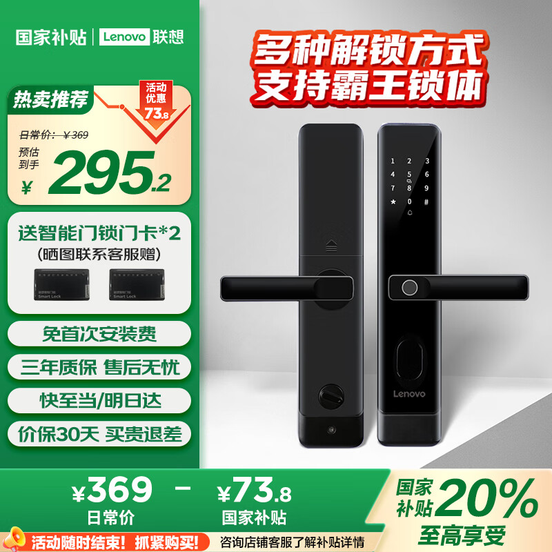 联想智能门锁E20 指纹锁 C级锁芯 入户门 防盗门锁 门卡密码锁 电子锁 【支持霸王锁体】国补立减补贴价格:369.00元!