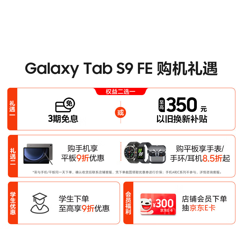 三星 Samsung【政府补贴】S9 FE 10.9英寸平板电脑/护眼大屏/IP68防水/含S Pen 6+128GB 石墨灰5G价格:2999.00元!