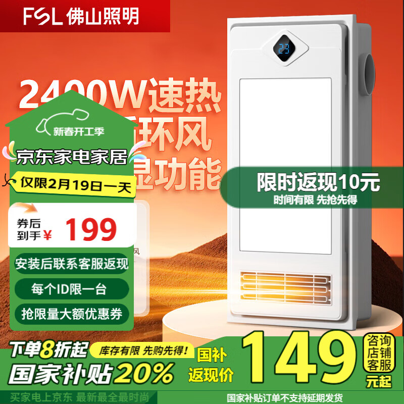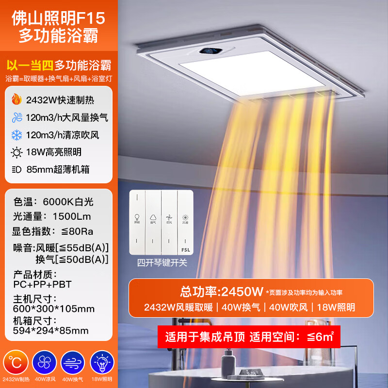 FSL佛山照明浴霸暖风照明排气一体机浴室取暖器卫生间集成吊顶F15价格:219.00元!
