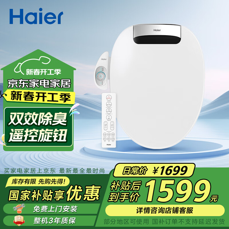 海尔(Haier)智能马桶盖 即热暖风款 遥控旋钮光感夜灯自动除臭 DF-28价格:1799.00元!