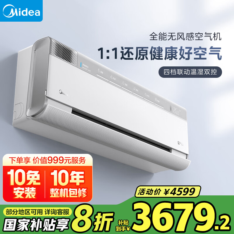 美的空气机 大1.5匹 超一级能效 自然新风 大冷量无风感空调挂机 轻奢风 家电补贴 KFR-35GW/T3价格:4599.00元!