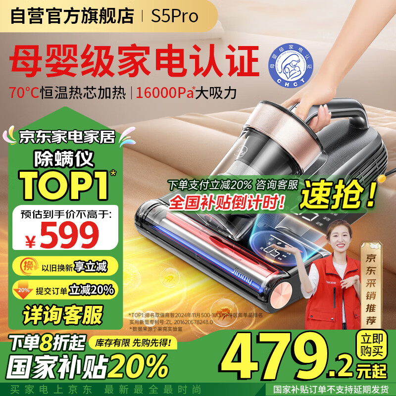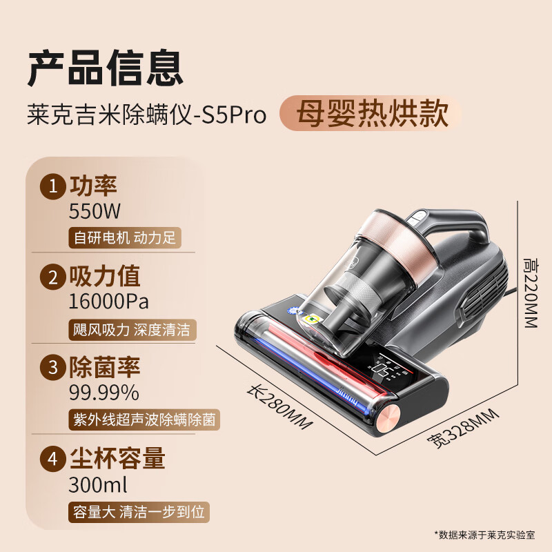 莱克吉米【母婴级】除螨仪床宝大吸力吸尘除蝻神器S5Pro家用床上小型加热手持杀菌去螨虫吸毛一体机价格:599.00元!