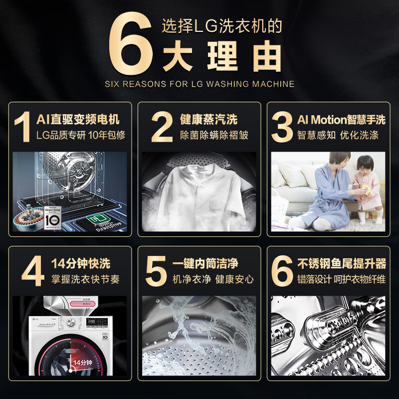 3、LG滚筒洗衣机,品质之选!这款洗衣机洗涤效果好,衣物洗得干净又柔软。而且操作简单,是家庭的好帮手。
