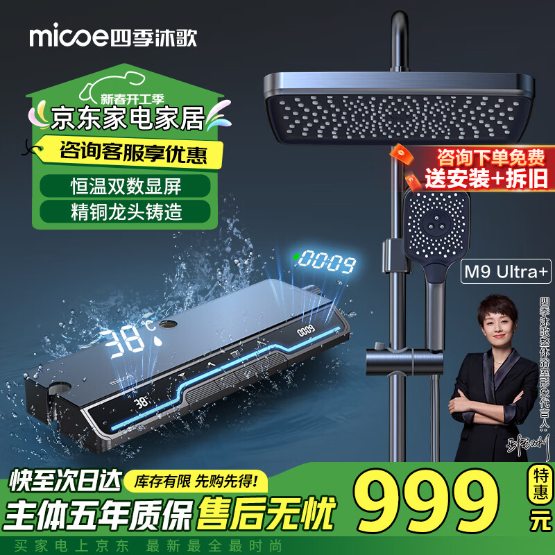 四季沐歌(MICOE)淋浴花洒套装 恒温数显增压淋浴器 枪灰氛围灯钢琴键智能花洒全套价格:1159.00元!