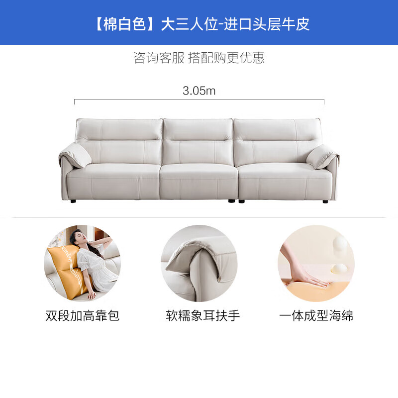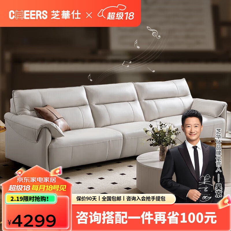 芝华仕(CHEERS)真皮沙发现代简约轻奢客厅家具芝华士直排3095大三白价格:4299.00元!