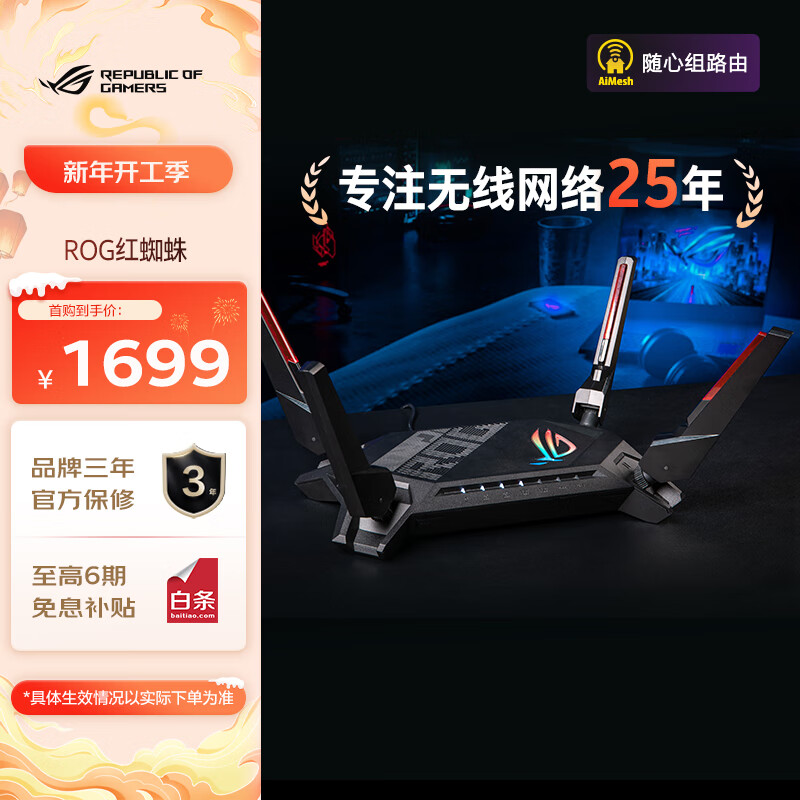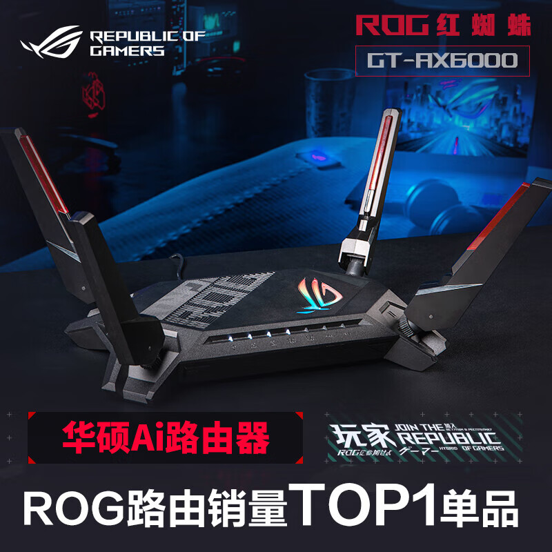 华硕(ASUS)ROG GT-AX6000红蜘蛛无线路由器千兆全屋WiFi6黑神话悟空下载利器/家用电竞路由/双2.5G口/Ai路由价格:1799.00元!
