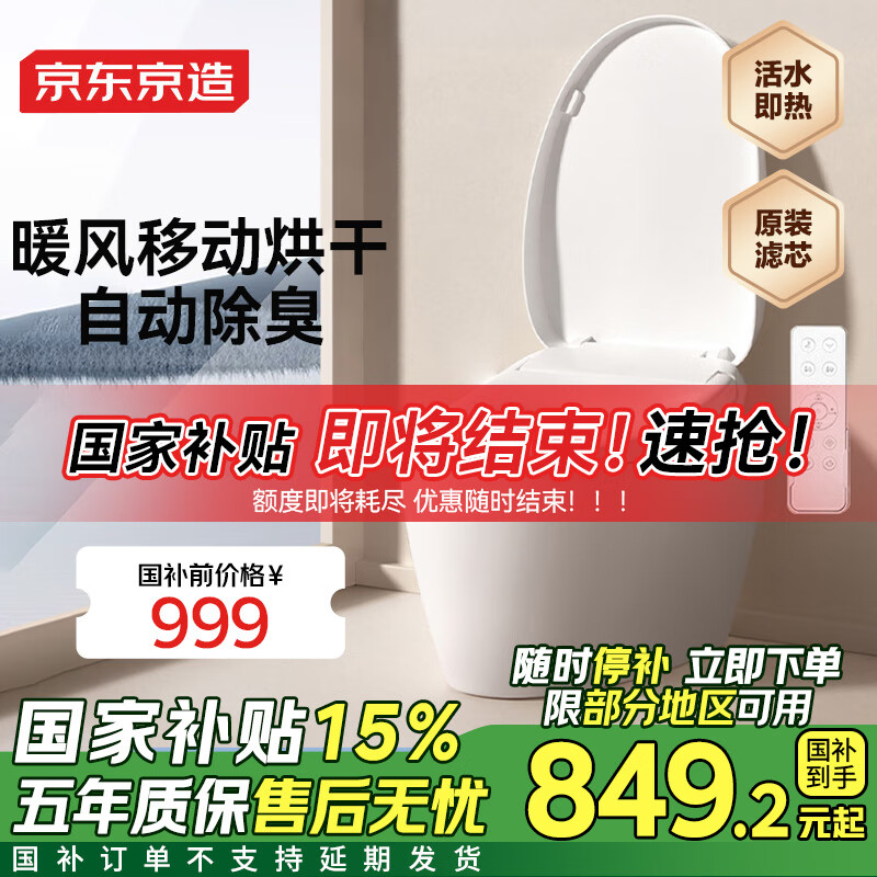 京东京造Pro智能马桶盖 全功能遥控 多档移动烘干 即热清洗 包安装价格:1099.00元!
