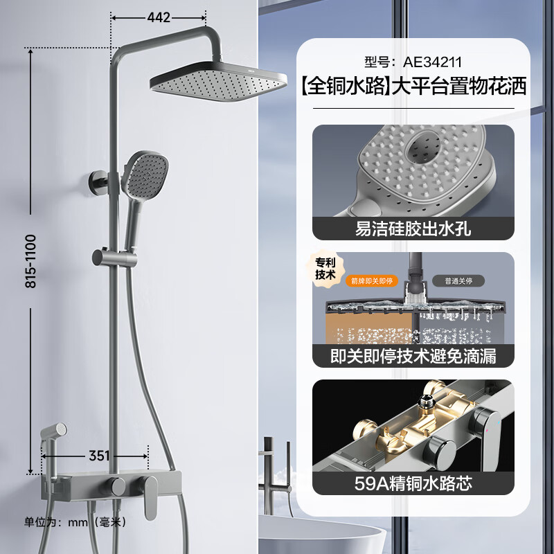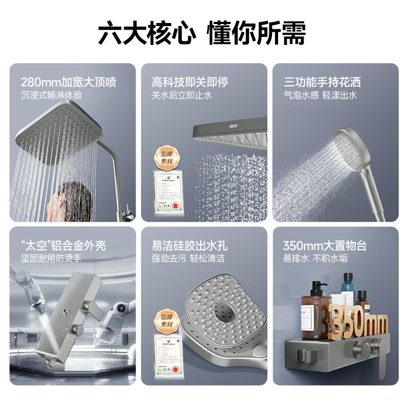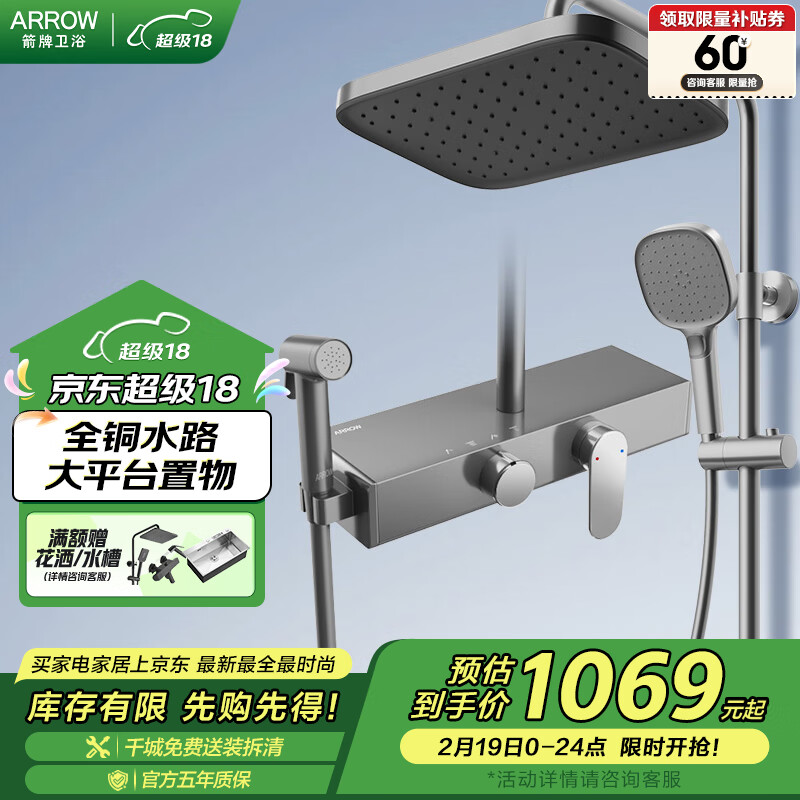 箭牌(ARROW)淋浴花洒套装枪灰色四功能花洒增压巨幕顶喷花洒AE34211MZGGSP-P2价格:1129.00元!