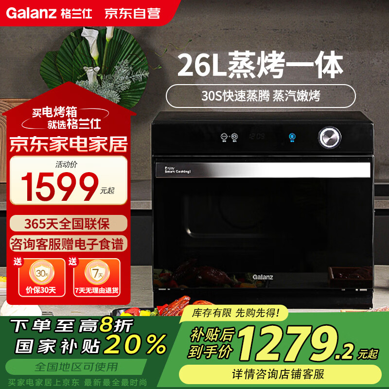 格兰仕(Galanz)电烤箱家用蒸烤箱26L大容量蒸烤一体机智能菜单独立控温烤箱蒸箱一体机D35价格:1599.00元!