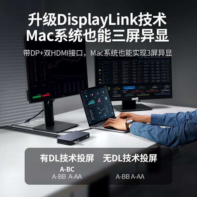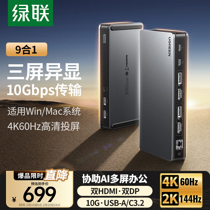 绿联Type-C桌面扩展坞Macbook三屏异显DisplayLink雷电5拓展坞双HDMI/DP多屏扩展10G适用M1234Macmini价格:699.00元!