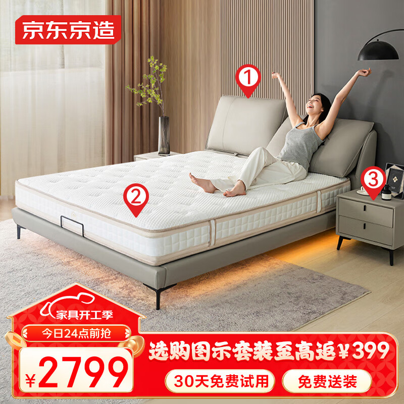 1、一直信任京东,所以也信任京造产品,床质量没问题,新产品设计也很好,特别靠包质感不错,还可以调节,靠着很舒服,上门安装及时。