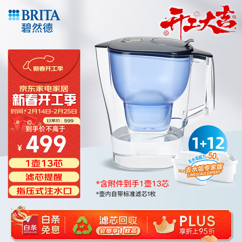 碧然德(BRITA)过滤净水器 家用滤水壶 Kalea 晨汐系列XL 3.5L(蓝)+专家版滤芯12枚(含组套)价格:499.00元!