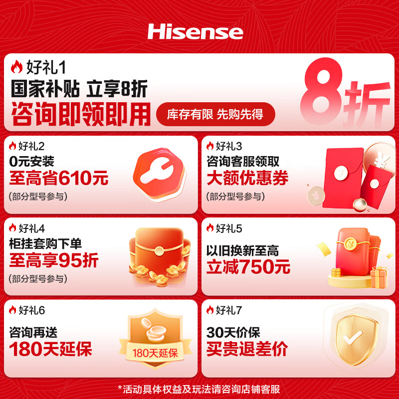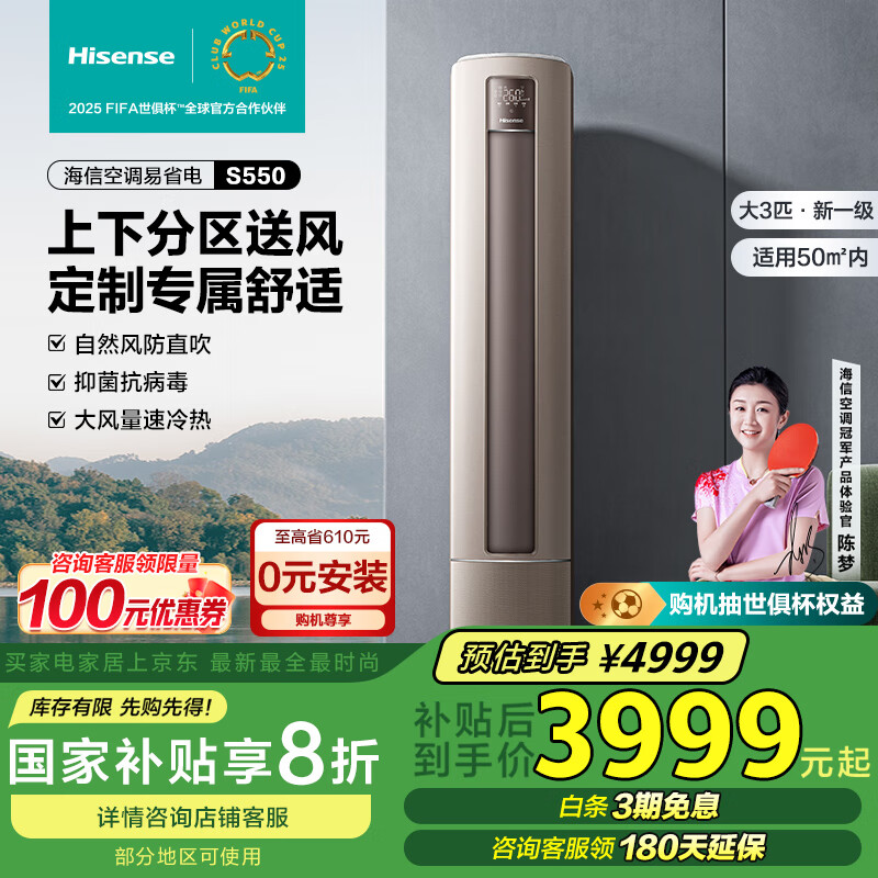 海信(Hisense)大3匹 易省电 空调柜机 大风量新一级节能变频冷暖客厅立式 家电补贴20% KFR-72LW/S550-X1价格:4999.00元!