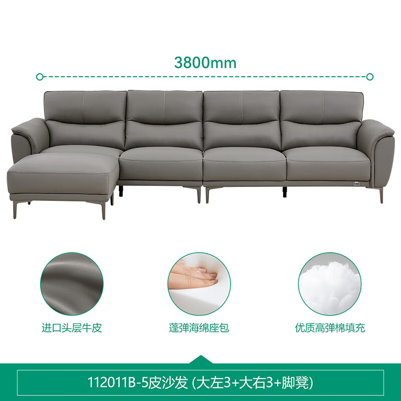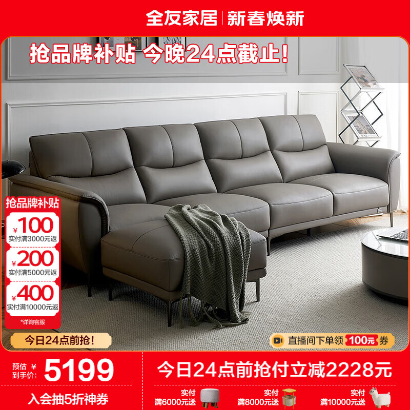 全友家居 简约风头层牛皮艺沙发大户型客厅豆腐块直排真皮沙发112011价格:7427.14元!