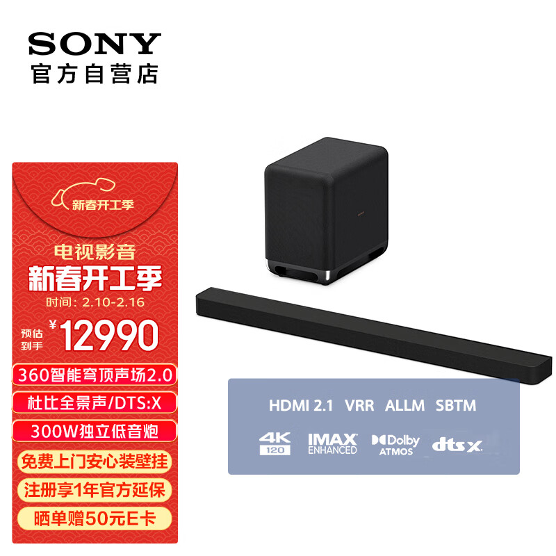 索尼(SONY)HT-A9000+SW5 进阶低音套装 360智能穹顶 4K120Hz VRR ALLM 家庭影院 回音壁 电视音响 蓝牙价格:12990.00元!
