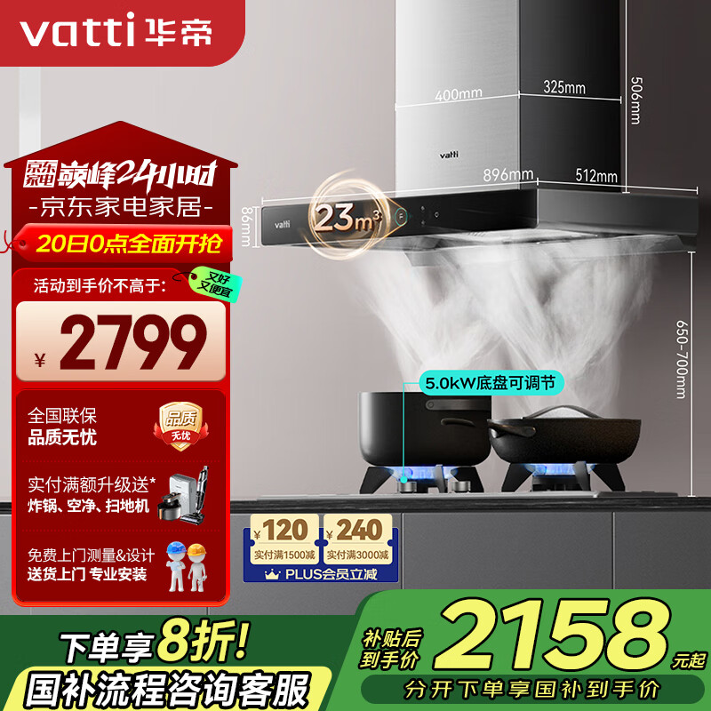华帝(VATTI)抽油烟机家用顶侧欧式大吸力烟机燃气灶烟灶套装23风量自动清洗顶吸i11178天然气【套装商品】价格:2799.00元!
